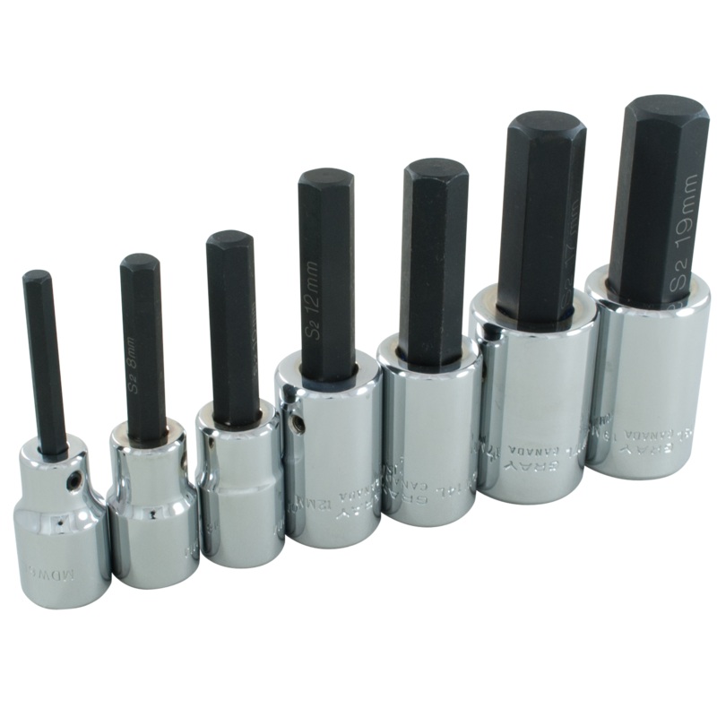 Contains Sizes: 6, 8, 10, 12, 14, 17, 19mm.Drive Size: 1/2"Mirror chrome finish for maximum resistance against corrosion.Precision tip ensures a tight and secure fit with the fastener.Standard length bit provides access to fasteners in confined spaces.Pack