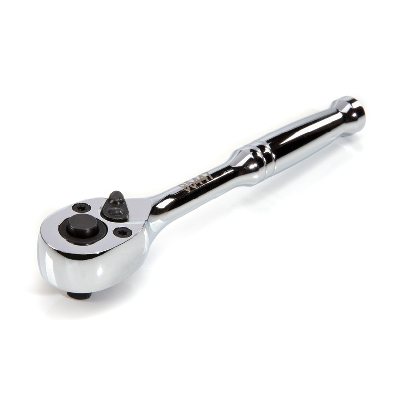 Thanks to its 72-tooth design the STEELMAN 95447 ratchet is ideal for accessing tight spaces. The ratchet head and handle are made of durable chrome-vanadium steel and can withstand the constant wear and tear that comes from working on vehicles. The high polish, chrome finish is resistant to rust and corrosion and easily wipes clean when soiled. The 72-tooth design needs only 5 degrees of arc swing to engage the ratcheting mechanism. This 5-inch long socket wrench features a forward/reverse switch that lets you easily change the direction of the drive. The tool’s drive accepts any 1/4-inch socket or extension and features a back mounted quick release button that allows effortless attachment and removal of sockets. Profiled handle provides superior grip and a more comfortable working experience, making this a must-have tool for any automotive technician.
