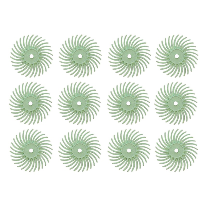 12 Pack 9/16" Light Green 1 Micron 3M Radial Disc SetWith their highly flexible and conformable bristles, these 3M discs can be used for a wide variety of cleaning and finishing needs. They can get into small grooves and fine details with ease and can be u