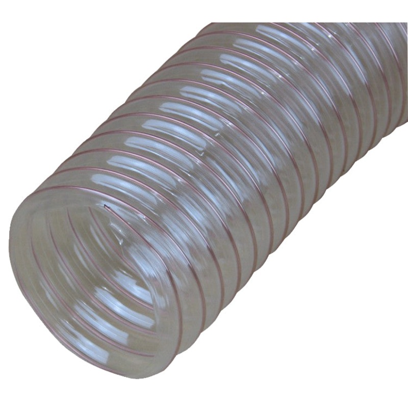 Transparent dust extractor hose 125mm (5") internal diameter.This hose is an upgraded Polyurethane product which is 5 times stronger than the traditional PVC. Its transparency enables blockages to be quickly identified and cleared. The hose has a steel wir