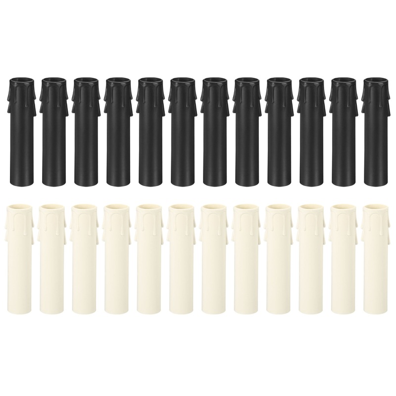 22x105mm Candle Socket Covers, 24 Pack Plastic Sleeves Candelabra Base Accessories for E12/E14 Chandelier, White, Black