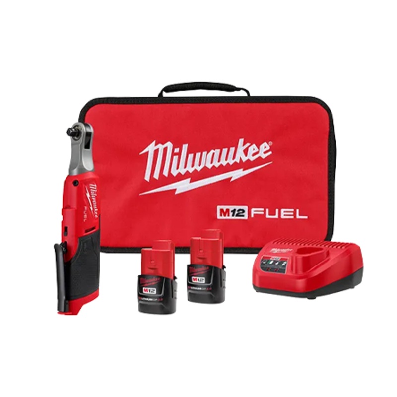 The M12 FUEL 3/8" High Speed Ratchet Kit is part of the latest addition to our best-in-class lineup of ratchets. This MILWAUKEE cordless ratchet kit features the fastest speed while installing and removing fasteners. The most compact head size in its class