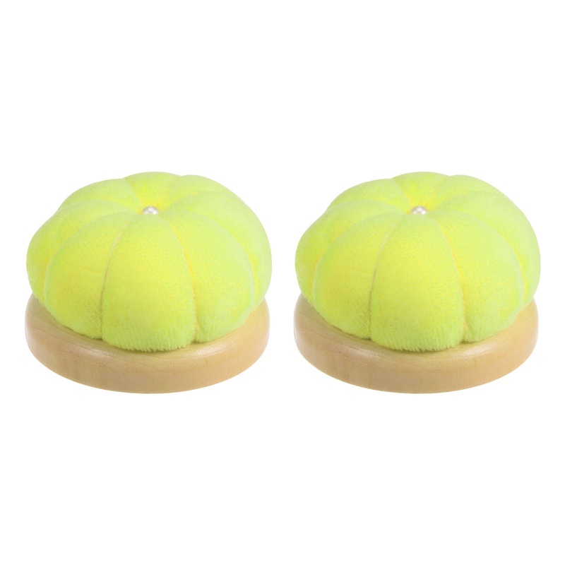 2pcs Wooden Base Needle Pincushions Japanese Style Cushions Fluorescent Yellow