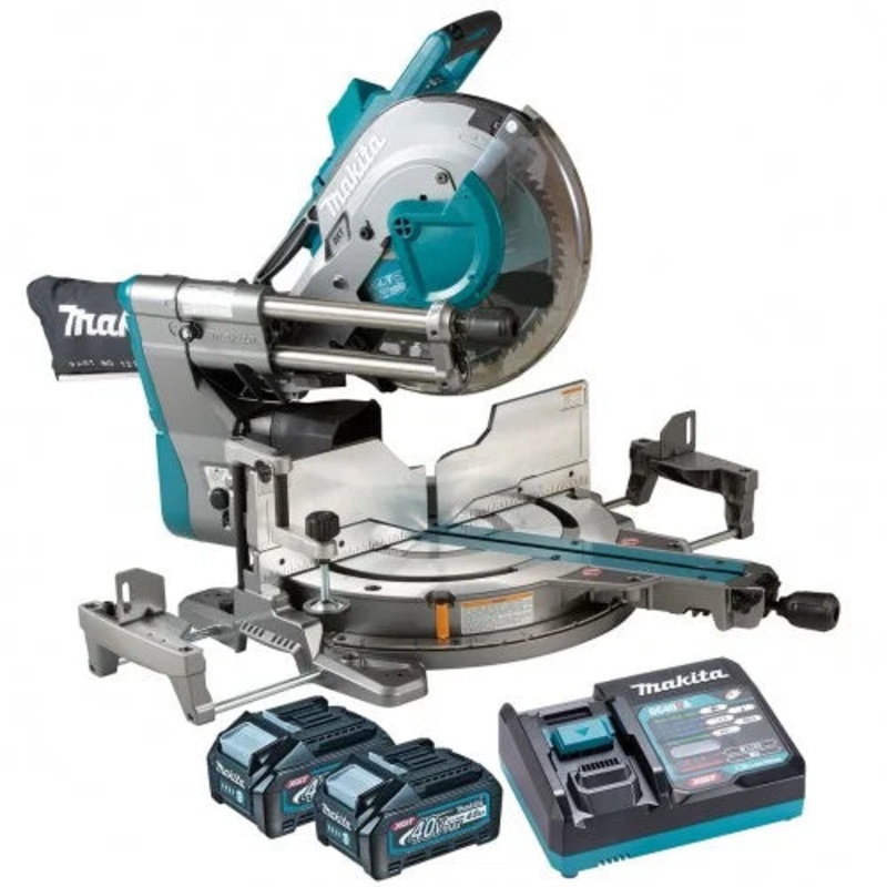 FeaturesIncludes: 2x 4.0Ah batteries (BL4040) and rapid charger (DC40RA)Forward Rail Design maximises work space and provides smooth precise cuttingShadow line projects cut line onto work materialDual zone dust extraction ports suppress dust scattering of