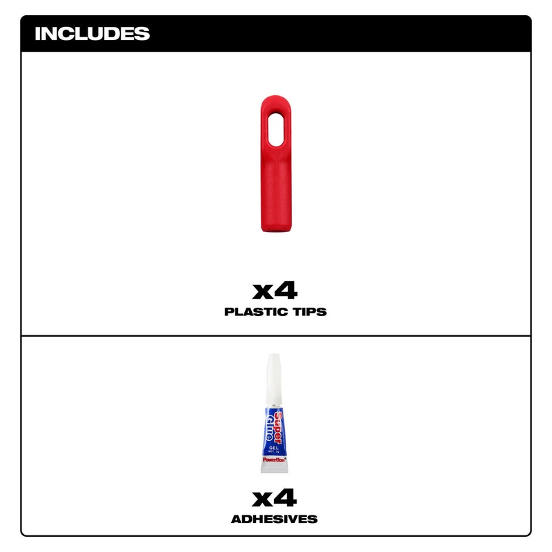 The MILWAUKEE 4-Pack Polyester Fish Tape Plastic Tips are replacement components for the Polyester Fish Tape Repair Kit. The non-conductive tips are threaded for reinforced attachment, increasing durability and extending the life of the tool. The anti-catch tip allows for easier, more efficient fishing. Compatible with all polyester Milwaukee Fish Tapes and the M18 FUEL ANGLER 100′ Non-Conductive Polyester Pulling Fish Tape.