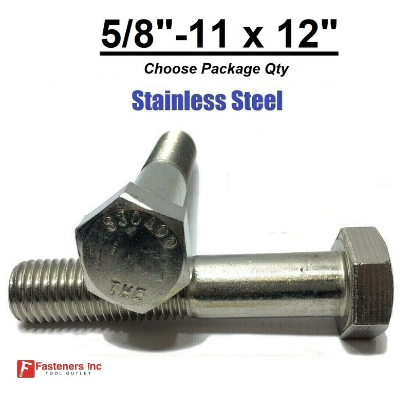 5/8"-11 x 12" Stainless Steel Hex Cap Screw / Bolt 18-8 / 304