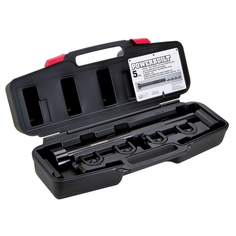 Need to change an inner tie rod but you dont want to remove the rack and pinion steering? These innovative crowsfoot wrench heads allow you to access the tie rods from many different angles, eliminating the need to disassemble the whole steering assembly. A strong knurled tie rod extension bar provides a secure grip. Strong and dependable enough to last a lifetime. Kit Services: Many Chevrolet, Nissan, Ford, Lincoln, Mercury, and Toyota trucks and SUVs, some Honda Passports, Cadillac Escalades, Jeep Libertys, and Hummer H2s.
