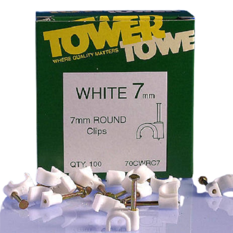 7mm Round Clip White Cable Clips with Toughened Nail for cable clip size please refer to individual cable pages