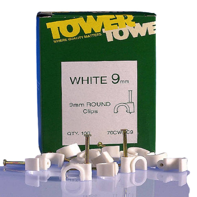 9mm Round Clip White Cable Clips with Toughened Nail for cable clip size please refer to individual cable pages