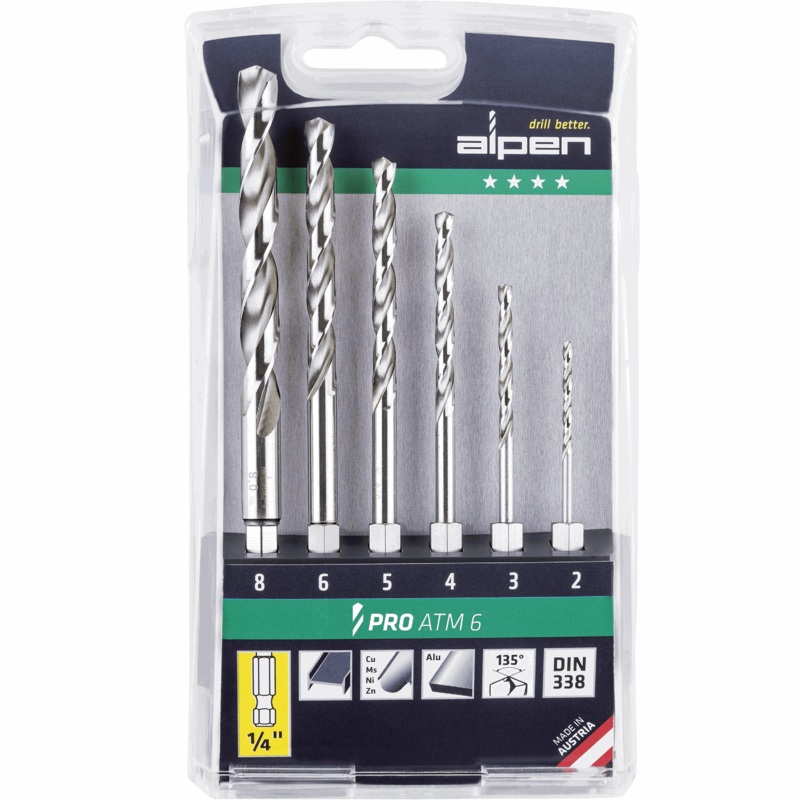 Alpen HSS Super Metal Drill Bit Set 6 Piece ALP ATM6Manufactured in Austria. Alpen drill bits arerecognisedfor their quality and performance. Great flexibility and precise drill holes even with constant change to drilling into different materials.Extremely