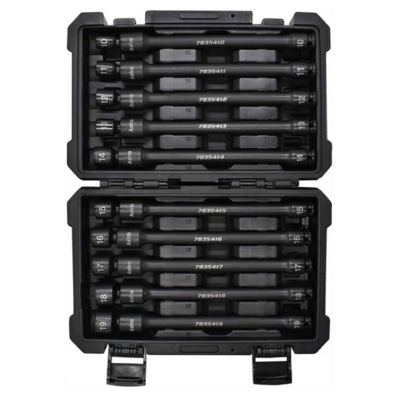 Astro Pneumatic 78354 (10-Piece) 3/8 in. Drive 6-Point Pinless Universal Torque-Saver Impact Extension Socket Set Details The Astro Tools 78354 10-piece 3/8 in. Drive Pinless Universal Torque-Saver Impact Extension Socket Set Metric is a no-skip set from 1
