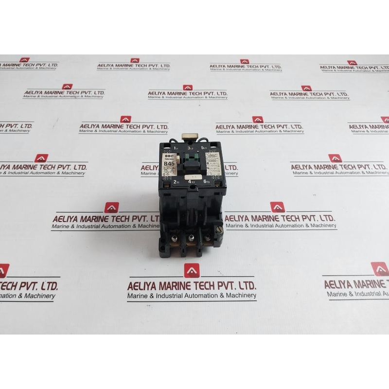 Bbc B45 Contactor 10A 600V A.C. A600 Ith= 95ABbcPetercemB45Iec 158-1Ute 63-110Vde 0660Nbnc 63-158Bs 5424-1Veritas Ch. 18Ith= 95AIe Ac1=80A Ui= 660V45A 600V A.C.Aux. Cont. 10A 600V A.C. A600Weight: 1.110 Kg