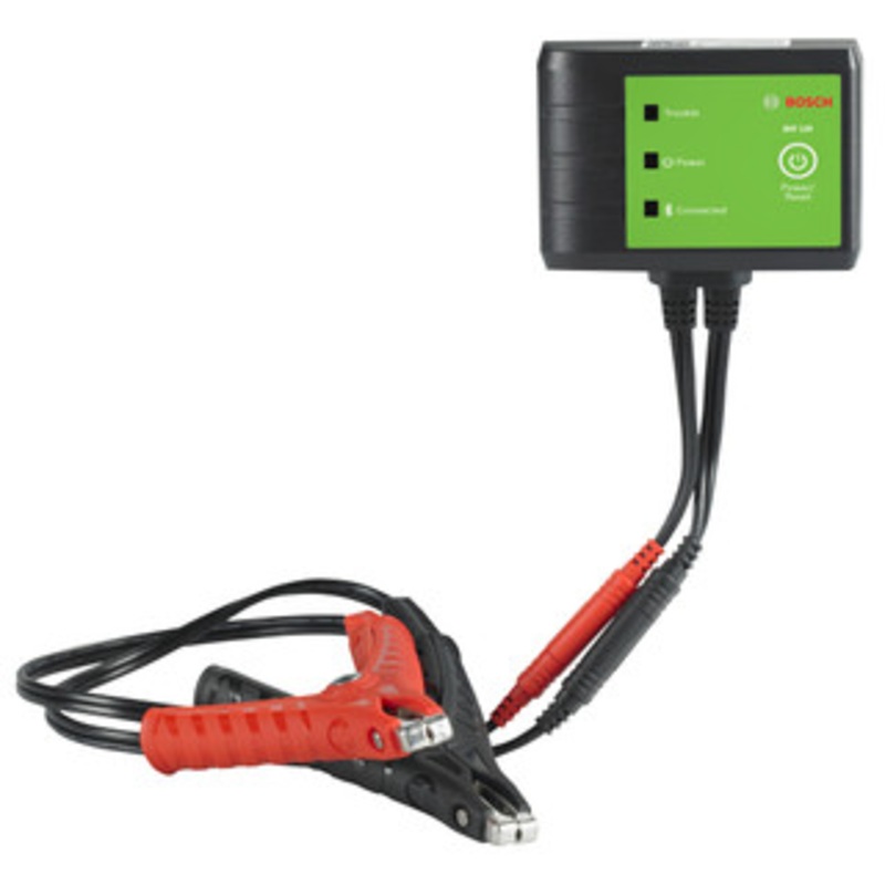 Test automotive batteries and create health reports Works on 6V and 12V automotive batteries – regular flooded, enhanced flooded, AGM, EV and start-stop 12V/24V charging/starting systems tests Test battery charging system to gauge alternator health and troubleshoot charging issues Email test results (stores 2,000 test records) Test batteries with as little as 1.5V 3 LED indicators (blue: connected, green: power, red: trouble) 20-inch cable with durable clamps Wireless via Bluetooth Compatible with Bosch ADS 325 and ADS 625, OTC Encore and Evolve w/ software version 2.10 or higher Kit Contents: Battery tester Leads Clamps
