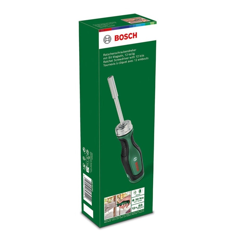 The Bosch DIY Screwdriver Ratchet with 12 bits 1600A02BX2 is a High-torque ratchet screwdriver for efficient screwdriving.Ratchet function with 36-tooth gear for up to 50 Nm torqueStable screwdriving with 80-mm rod and magnetic bit holderErgonomic design a