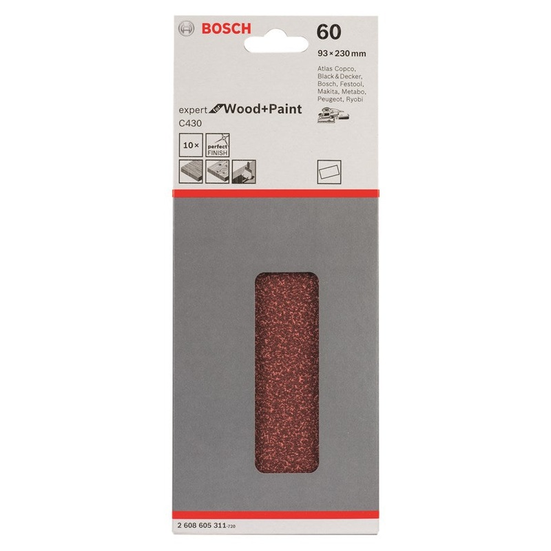 Bosch Expert for Wood & Paint, 93 x 230 mm, no holes, 10 pc, clip on ( Select Grit )