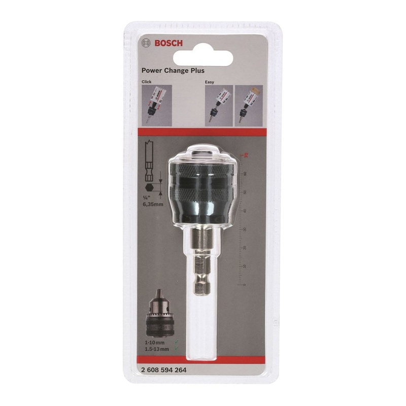 Bosch Professional Power Change Plus HEX 8,7 mm 2608594264Technical DataProduct text, Accessories greyPC Plus mandrel 3/8" 8.7 mmPackaging typeCombined cardboard / plastic packaging, blister, with Euro holeShank, shapeHexagonIncludes1x Mandrel