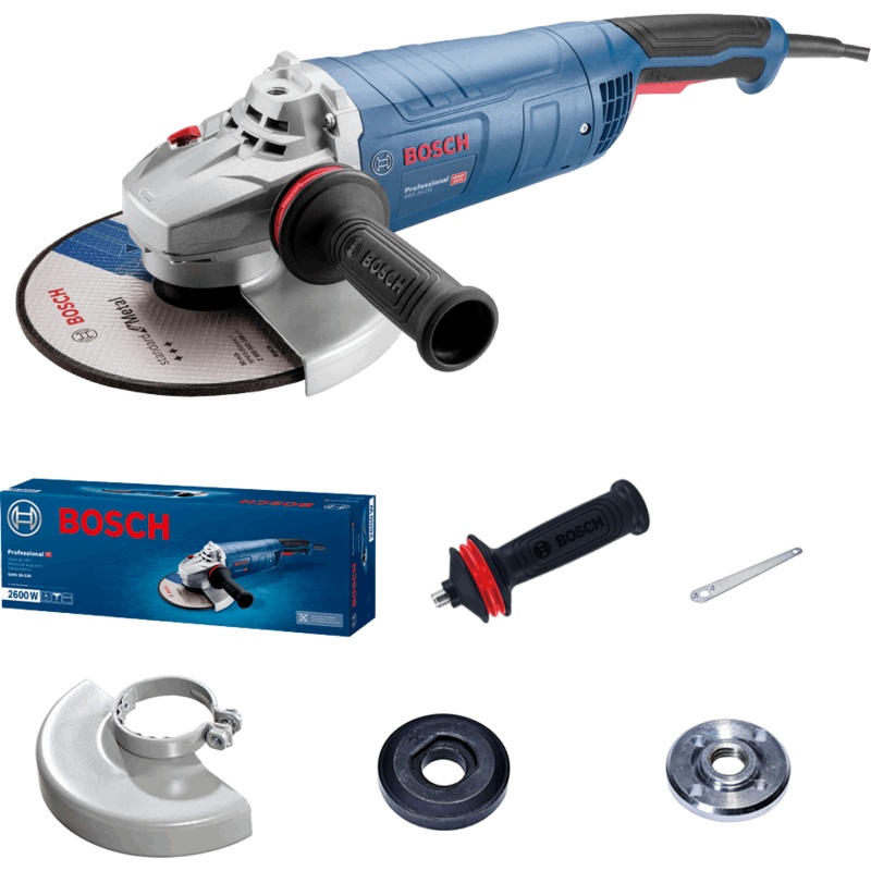 The Bosch Professional 230mm Angle Grinder GWS 26-230 06018F60K0 isSimply The Powerful Partner for Your Job.High performance 2600W motor with excelent material removal rateOptmized air flow and long life carbon brush results in higher durability and less m