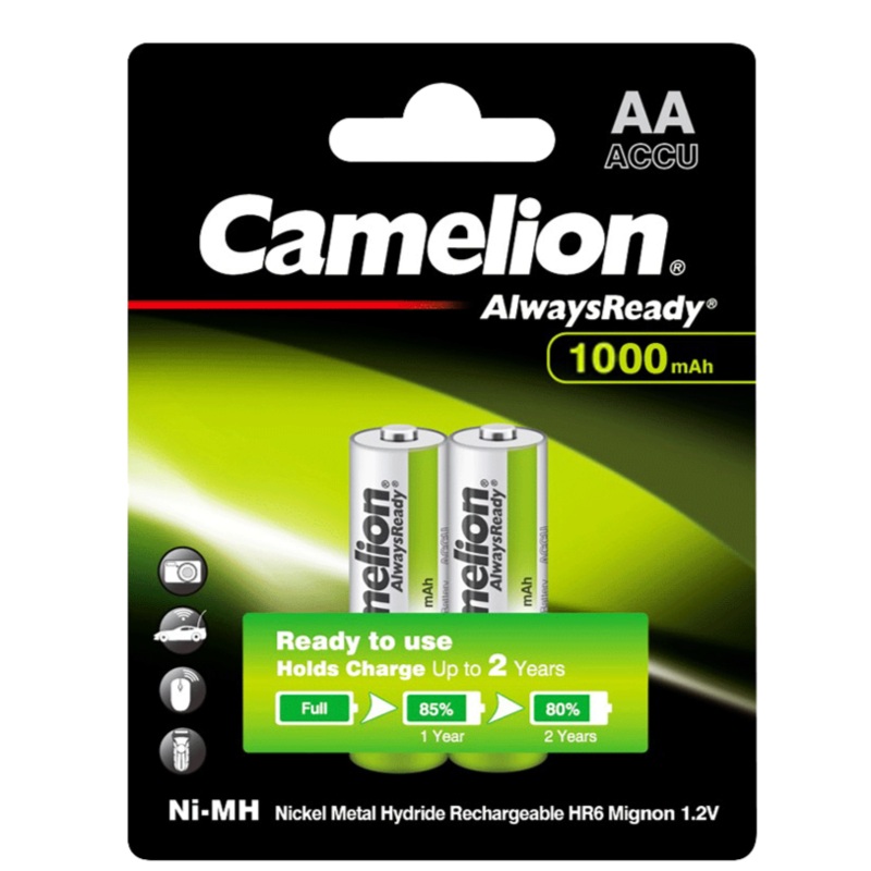 Packing : 2 pieceParameter: 1.2V | AA | A2Capacity : 1000mAh, 2500mAh , 2700mAhAlways ReadyMain FeaturesPre-charged in full battery capacityLow self-discharge rateHigh capacity and excellent performanceLong cycles lifeNo mercury and cadmium added to the fo