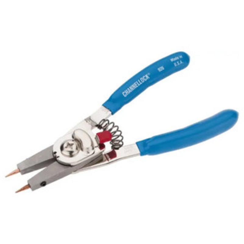 ChannelLock Retaining Ring Pliers Sets Features: Change from internal to external with a simple switch of the tab Includes 5 pairs of color coded interchangeable tips Heavy-duty return spring Channellock Blue grips for comfort 5 Pc. Set (63-126-7) Capacity