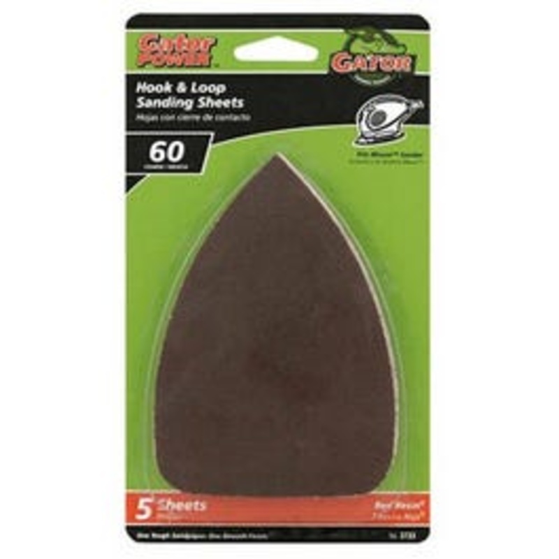 Gator, 5 Pack, 3.5" x 5", 60 Grit, Aluminum Oxide, Detail Sanding Sheets, Mouse Refill, Specifically Designed To Allow You To Sand In Corners & Tight Spaces, For Use With The Gator Hand Detail Sander #7330 & Black & Decker Mouse Detail Sander, Quick Change