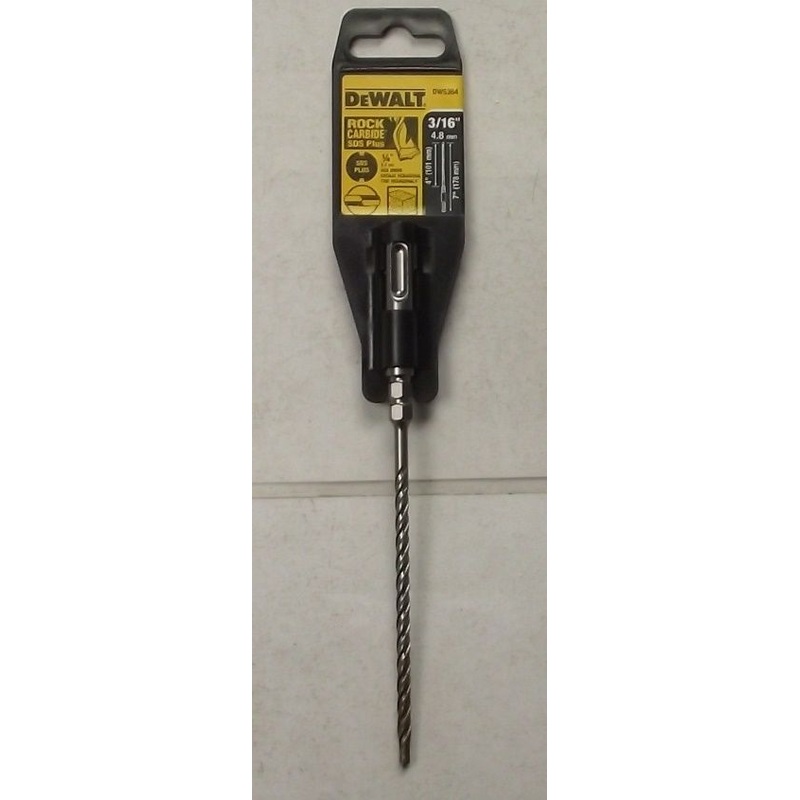Dewalt DW5364 3/16" x 4" x 7" Hex SDS Hammer Drill Bit GermanyHammer drill bit, 3/16" d x 7" oal, 4" flute.Rock carbide tip maximizes carbide surface contact for longer bit life Rock carbide tip maximizes carbide surface contact for longer bit life while t