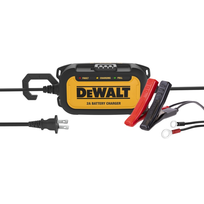 Get convenient, automatic charging for your 6-Volt and 12-Volt AGM, GEL or WET automotive or marine batteries with the DeWalt DXAEC2 Two Amp Battery Charger and Maintainer. This handy unit functions as a battery charger, maintainer and trickle charger. Its fully automatic high frequency charging restores lost battery performance for stronger engine starts and extended battery life. The built-in circuit protection guards against overcharging, reverse polarity. Includes a hanging hook for ease of use in tight spaces.