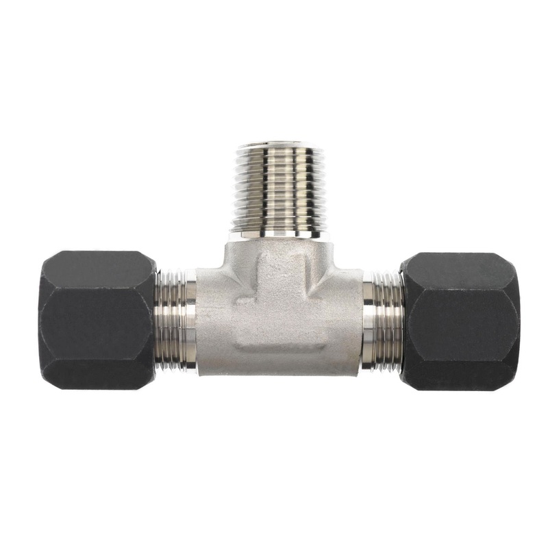 Flareless Bite Type Branch Tee, 316 Stainless Steel, 1/4 x 1/4" x 1/4-18 (04), Tube x Tube x Male NPTF