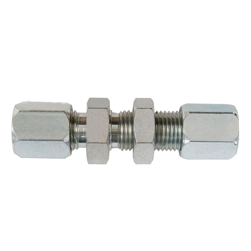 Flareless Bite Type Bulkhead Union, Straight, Carbon Steel, 3/8 x 3/8″ OD, Tube x Tube