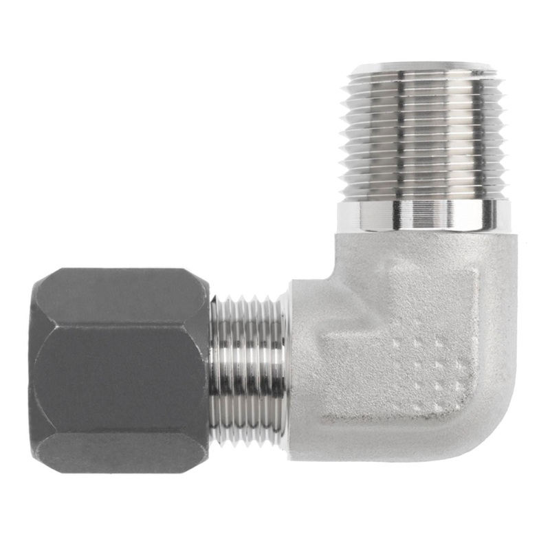 Flareless Bite Type Elbow, 90, Carbon Steel, 5/16″ x 1/8-27 (02), Tube x Male NPTF