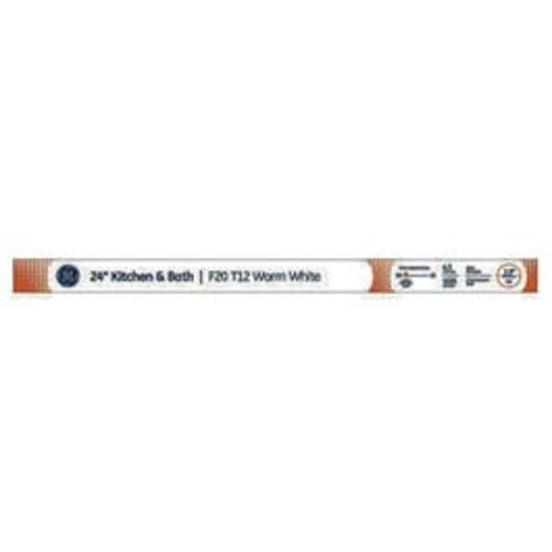 Ge, f20t12kb, 20w, fluorescent light bulb, kitchen & bath, color enhancing, 24" x 1-1/2" diameter, medium bi pin, 785 lumens, 9000 hours, 3000 kelvin, cri=70.