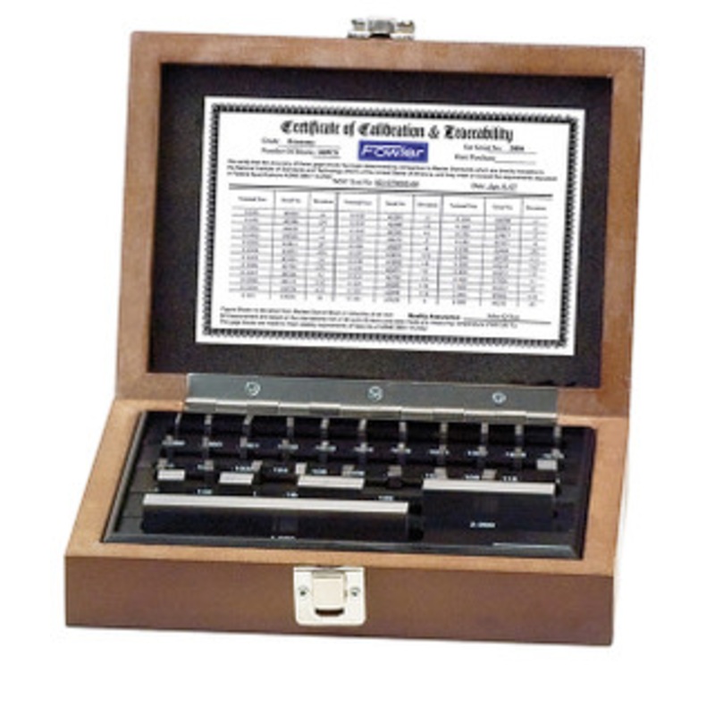 Fowler Inch & Metric Series Rectangular Gage Block Sets Inch Series: Each block is rectangular steel and hardened to 65RC, stress relieved, lapped to accurate size, parallelism and flatness, then carefully inspected and marked for size; designed to meet cl