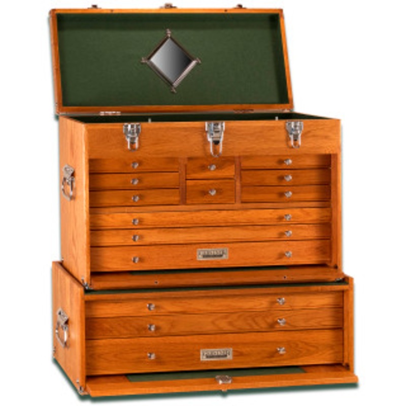 The GI-T24 Oak 11-Drawer Top Chest is a classic American style chest. This is a great chest for toolmakers to store their precision tools. It is also suitable for all kinds of home use. This chest is perfect for a multitude of usages ranging from moisture free storage of precision hand tools to hobby storage.