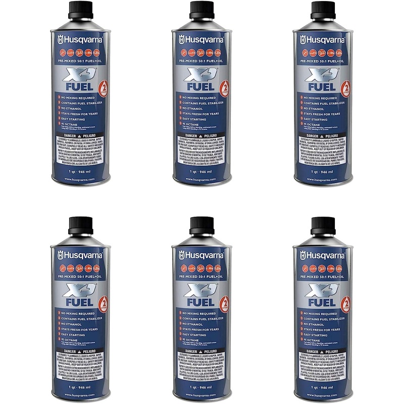 Includes (6) 581158701S XP+ Pre-Mixed Fuel and Oil for 2 Stroke Engines. Ethanol-free, high 95 octane fuel combined with JASO FD certified premium Husqvarna synthetic blended oil. 50:1 Fuel to Oil Ratio in a quart sized can. No more mixing oil and gas by h
