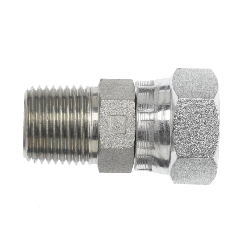 Hydraulic Connector, Straight, Carbon Steel, 3/4-14 (12) x 3/4-14 (12), Male NPTF x Female BSPP Swivel