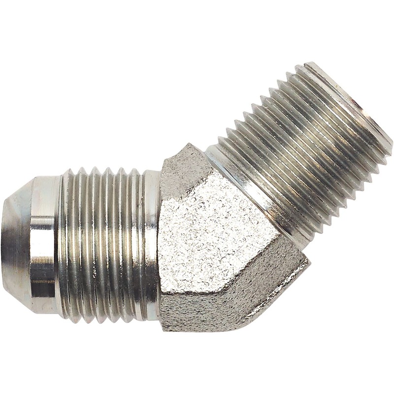 Hydraulic Elbow, 45, Brass, 1-5/16-12 (16) x 1-11-1/2 (16), Male JIC x Male NPTF