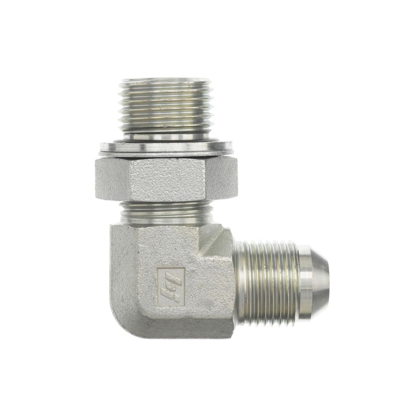 Hydraulic Elbow, 90, Carbon Steel, 7/16-20 (04) x M12 x 1.5, Male JIC x Male Metric Straight Thread