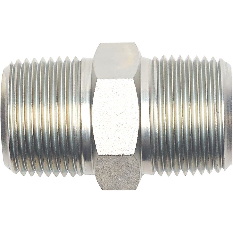 Hydraulic Nipple, Hex, Straight, Carbon Steel, 1-11-1/2 (16) x 3/8-18 (06), Male NPTF x Male NPTF