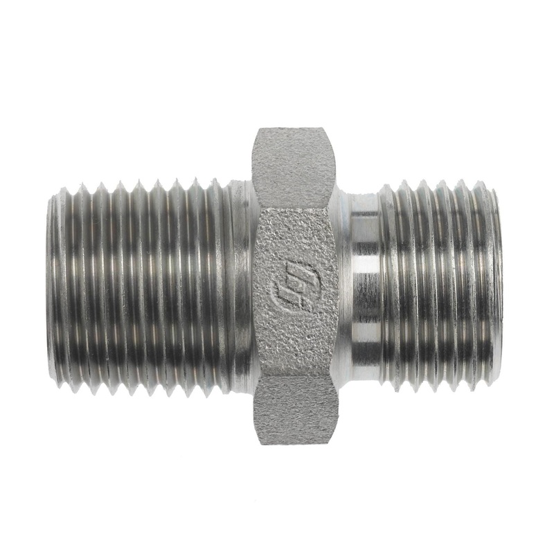 Hydraulic Nipple, Hex, Straight, Carbon Steel, 1/2-14 (08) x 3/4-14 (12), Male NPTF x Male BSPP