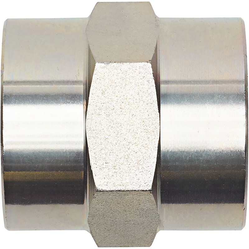 Hydraulic Pipe Coupling, Straight, Carbon Steel, 1/4-18 (04) x 1/8-27 (02), Female NPTF x Female NPTF
