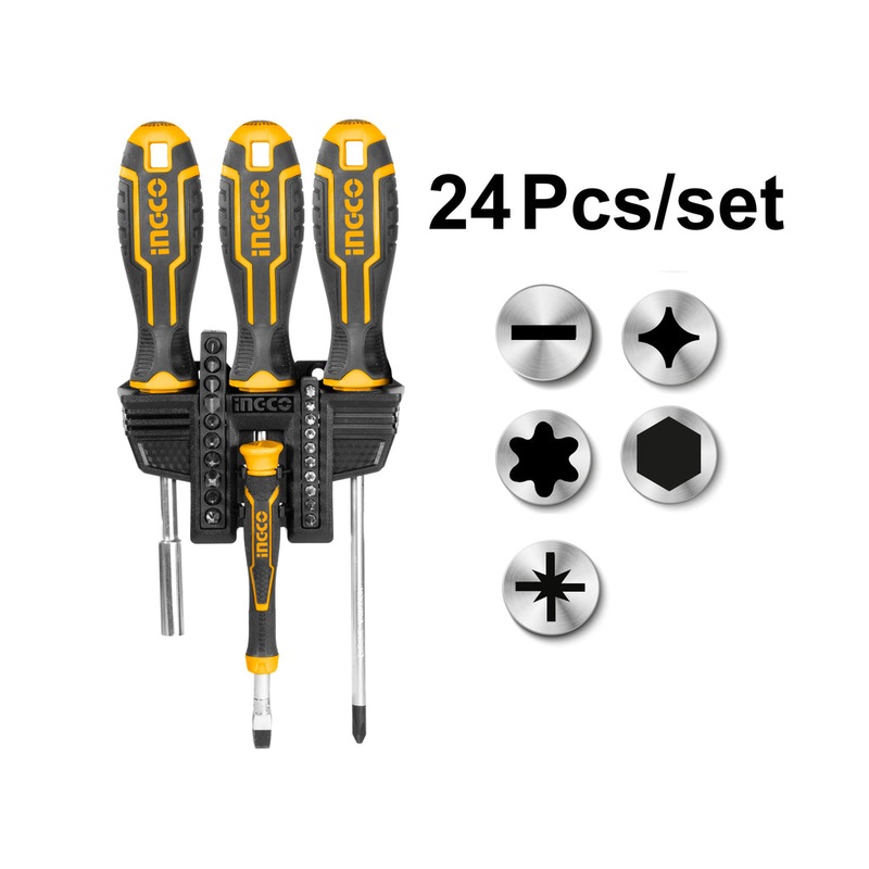 24 pcs screwdriver and bits setInclude:1pcs SL6.5X150mm 1pcs PH2X150mm1pcs 1/4"*100mm screwdriver magnetic shank10pcs 1/4"X25mm bits:PH1 PH2 PZ1 PZ2 SL4 SL6 H4 H5 T20 T251pcs Precision screwdriver magnetic shank 10PCS 4X28mm Precision bits:PH000 PH00 PH0 S