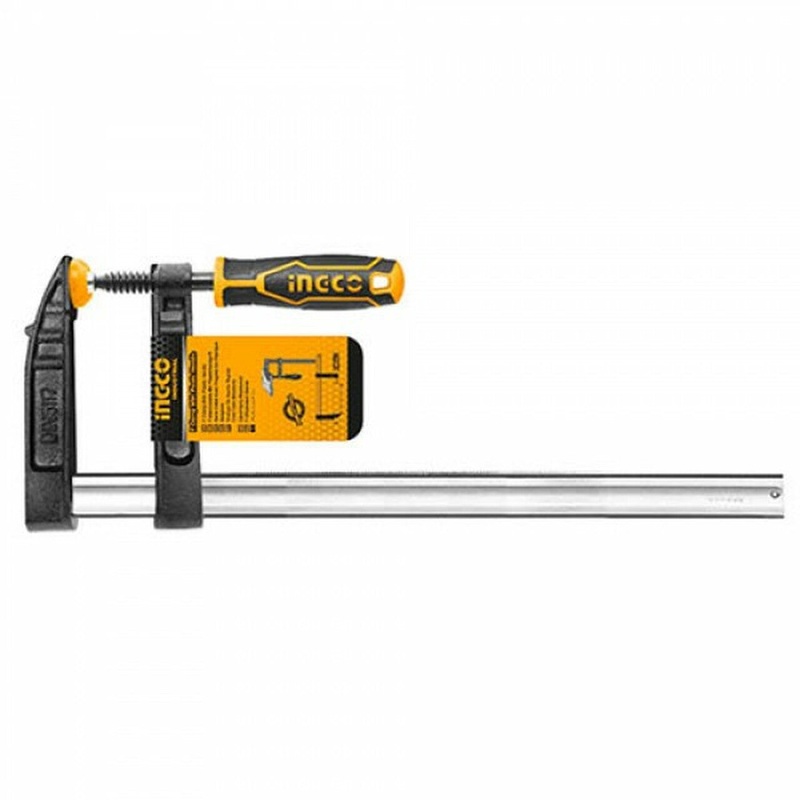 Clamp size:140x1000mm Max clamp force: 550KGSThickness and width of iron ruler:10X35mm Diameter of screw thread:17.8mmPacked by paper card