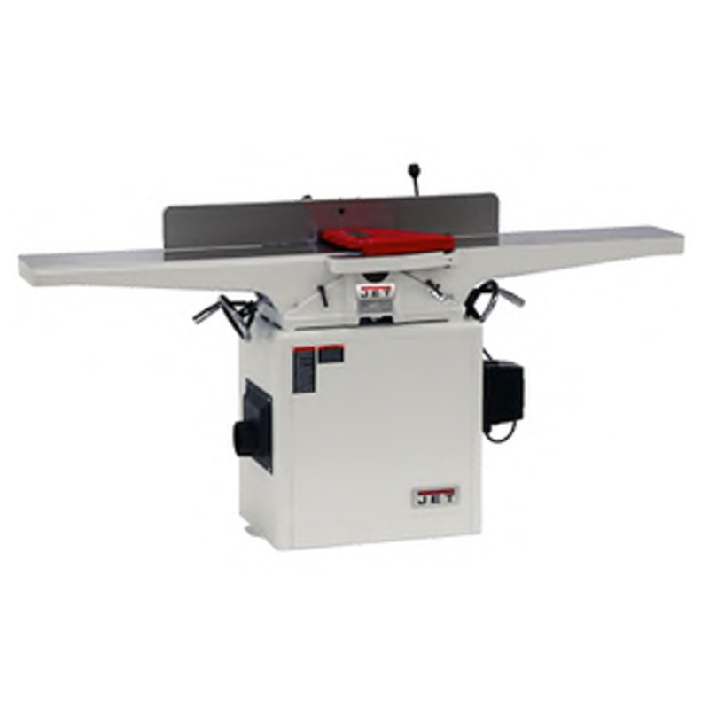 The 2HP motor runs quietly and smoothly. Its front-mounted table adjustment handwheels make quick, easy and accurate corrections. The two-way tilting fence with positive stops at 45 and 90 makes bevel operations smooth. Extra-long heavy-duty cast iron infeed and outfeed tables with precision-machined finish allow jointing of longer boards without tipping. Best of all, it comes by JET’s industry-leading 5 year warranty.