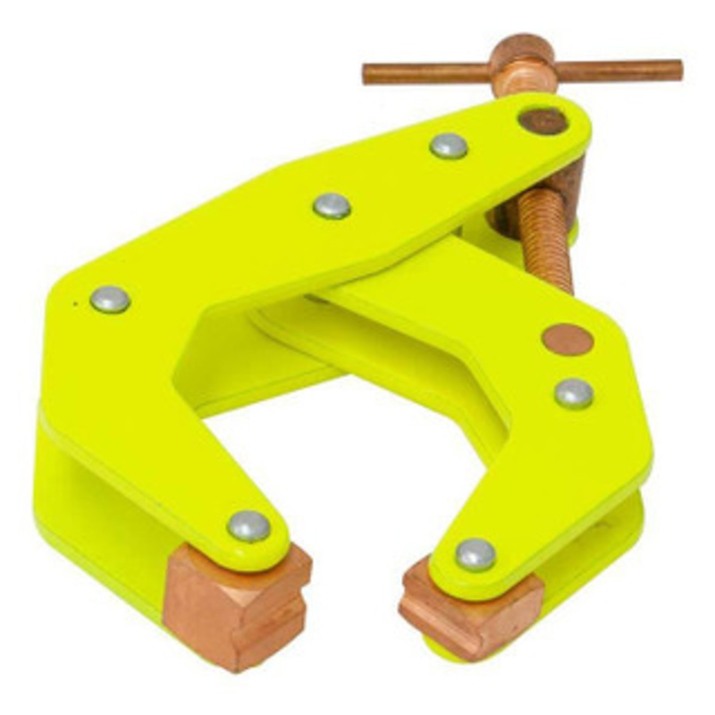 Kant Twist Cantilever Clamp, Hi-Vis Yellow Deep Reach Throat w/ Weaver-Grip, 6" Jaw Capacity - K060TDHVYW Hi-Vis Yellow Deep Reach Throat, Copper Plated Jaws, Screw and T-Handle w/ Weaver-Grip Kant-Twist Cantilever Clamps offer several advantages over stan