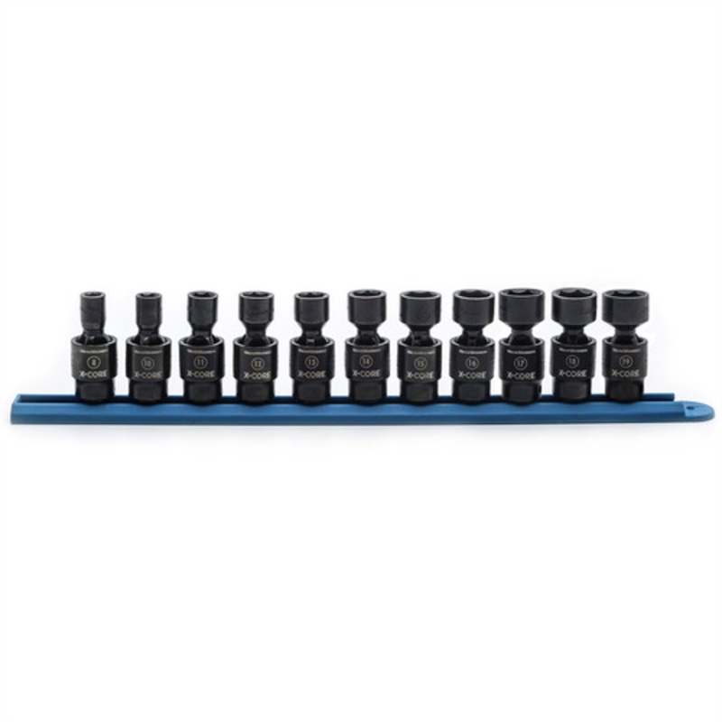 KD Tools 84975 11-Piece X-CORE 3/8 in. Drive 6-Point Metric Pinless Universal Socket Set Details Compared to even the best pinned impacts, X-CORE Pinless impact tools deliver far greater durability and superior access. The exclusive four-lug ball-and-socke