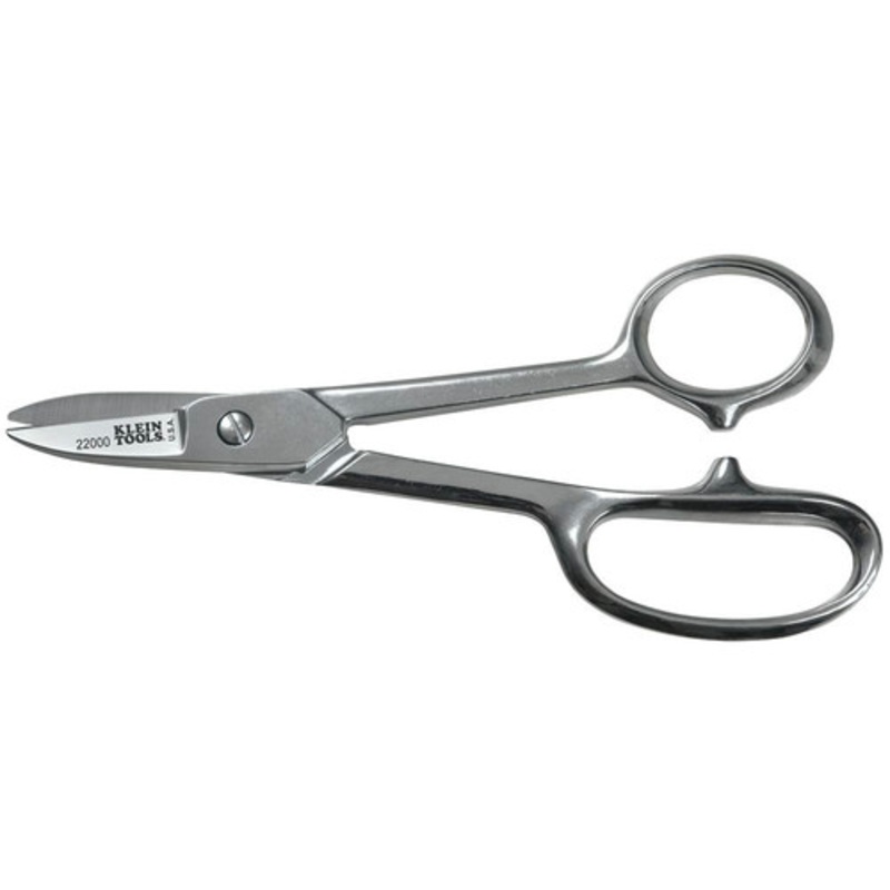 Klein Tools 22000 6-1/2 in. High-Leverage Electrician Snip/Scissors Details These Klein Tools Scissors are a high-leverage snip designed to cut a wide range of materials. It features an extended handle that provides comfort and cutting leverage. One blade