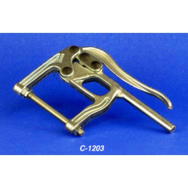 Knu-Vise C-Clamp 2.25" Throat Depth - C-1203 C-Clamps are similar to Pliers but a physically larger and can handle larger loads. They are designed to be portable but can easily be mounted to a fixture or work surface if required. C-Clamps are available in