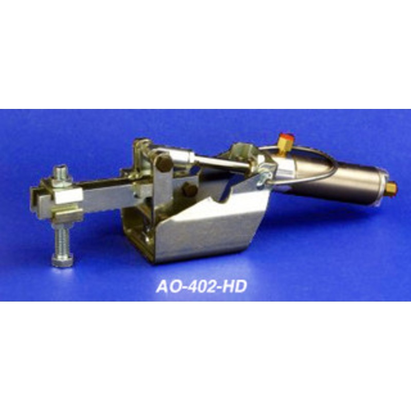 Knu-Vise Heavy Duty Air Operated Hold Down Clamp 3.44" Throat Depth - AO-402-HD Pneumatic Hold Down Clamp. Horizontal mount Open Toggle bar - Heavy Duty Weight: 5.67 lbs Holding Capacity: 400 lbs 1779 N Holding Capacity 1.13 in Front of Base: 760 lbs 3381