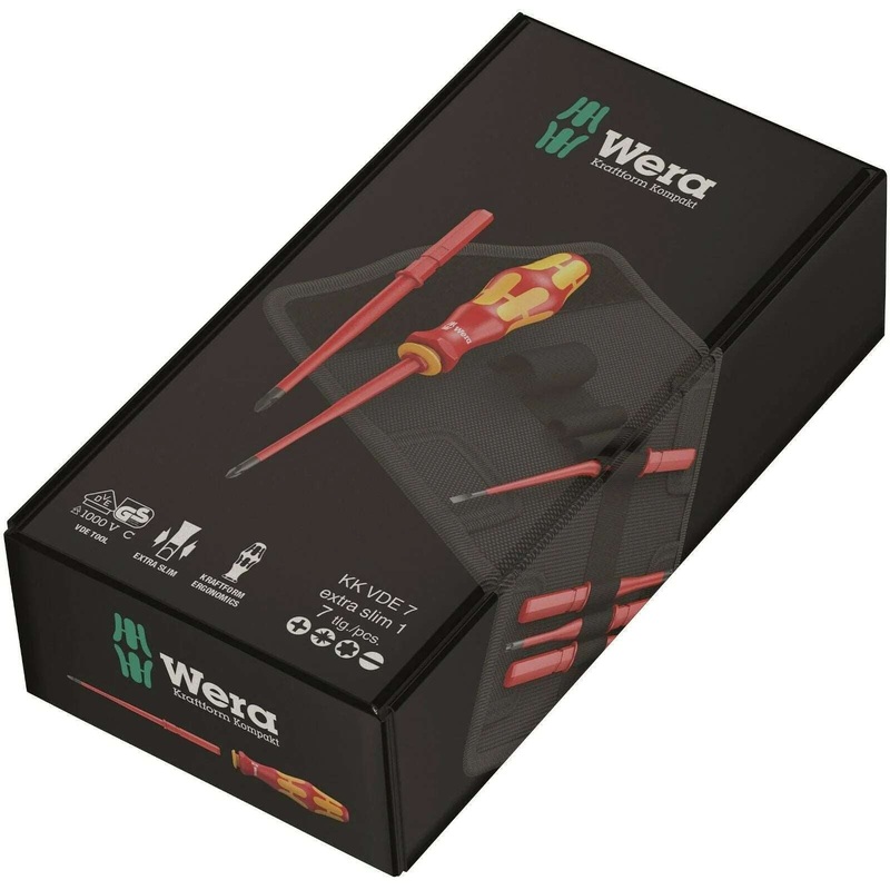 Empower your electrical work with the Kraftform Kompakt VDE 17 extra slim 1, a comprehensive 17-piece set designed for professional electricians. This set features individually tested VDE interchangeable blades with reduced diameters for precision work on sunken screws and spring elements, ensuring safety and efficiency.