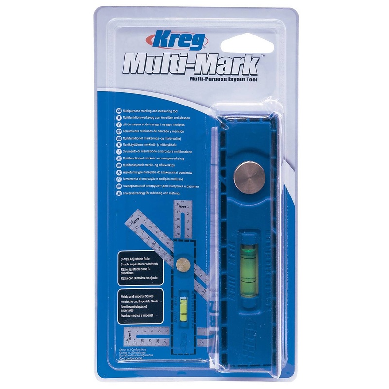 Kreg Multi-Mark Multi-Purpose Layout Tool KMA2900Three scale configurationsImperial and metric scaleBuilt-in torpedo level3/16" (5mm) reveal gaugeDurable, compact designMetric ReadingsTechnical DataFeaturesThree scale configurationsImperial and metric mark