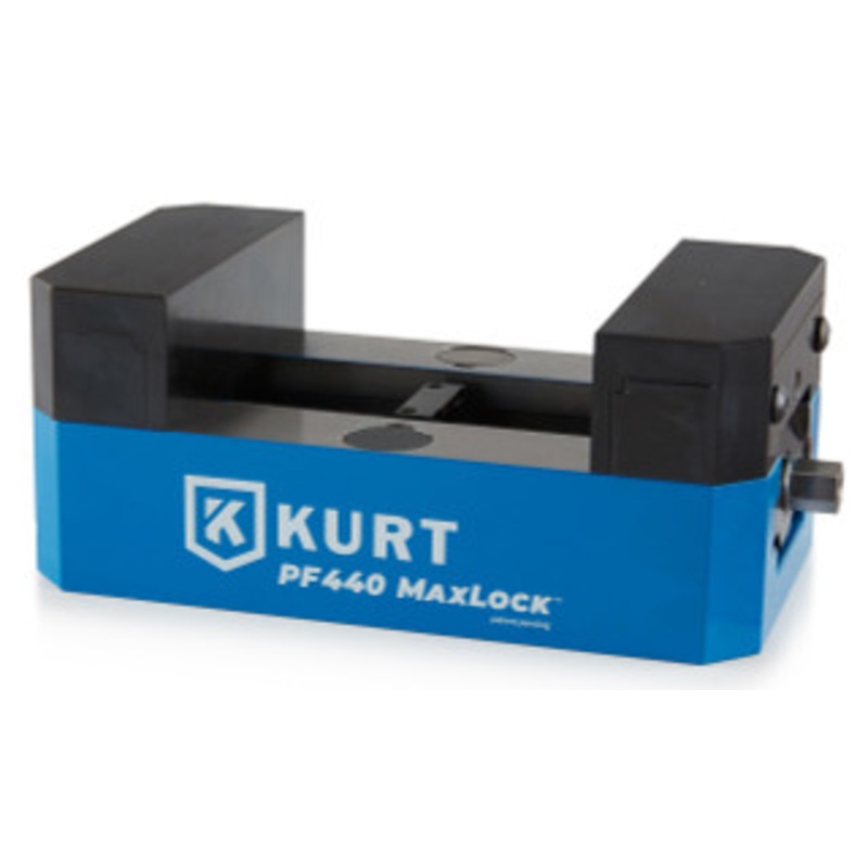 Kurt Precision Force MaxLock 5-Axis Vise PF440 with Machinable Jaws - PF440-M Introducing the new Precision Force 5-Axis MaxLock vise lineup featuring 3 new models with 3 available jaw options. Robot-ready Kurt PF-series vises offer new user-friendly featu